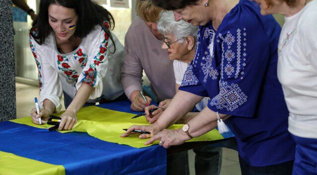 З нагоди “ювілею” волонтери прикрасили побажаннями великий український прапор. Він також стане підтримкою для наших захисників, адже його разом із черговою партією сіток відправлять на фронт.