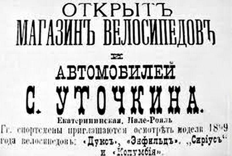 Одеська історія велосипеда та велоспорту неможлива без згадки про Сергія Уточкіна. Він одеська легенда спорту. За своє життя Уточкін спробував себе у понад 15 видах спорту. Тому його називали “академік спорту”. Перший велосипед хлопцю купив його опікун Михайло Шульгін, щоб чимось його зайняти з користю для здоров’я. Це був зразковий механізм фірми “Діана”. З того часу Уточкін брав участь в одеських перегонах, в інших містах Російської імперії та закордоном. Зокрема в дебютному виступі в Португалії виборов призове місце.