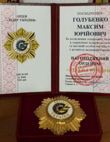 Гідної оцінки своєї праці удостоївся головний лікар найстарішого в нашому місті закладу охорони здоров’я, де народжуються маленькі громадяни нашого міста, М.Ю. Голубенко. “Асамблея ділових кіл” удостоїла його свого ордена “Лідер України” (№ 265).